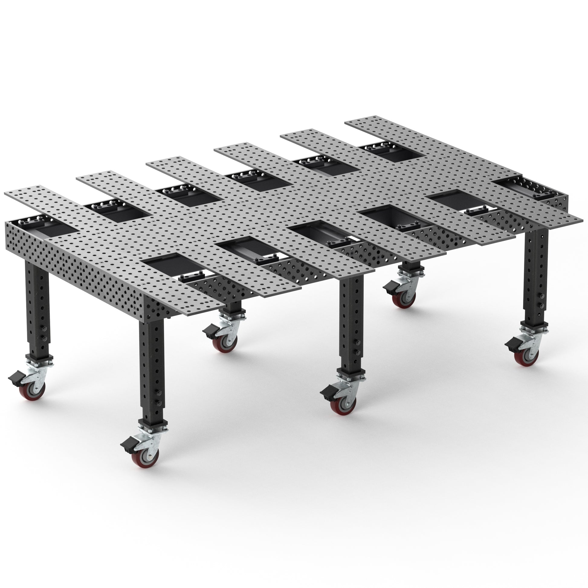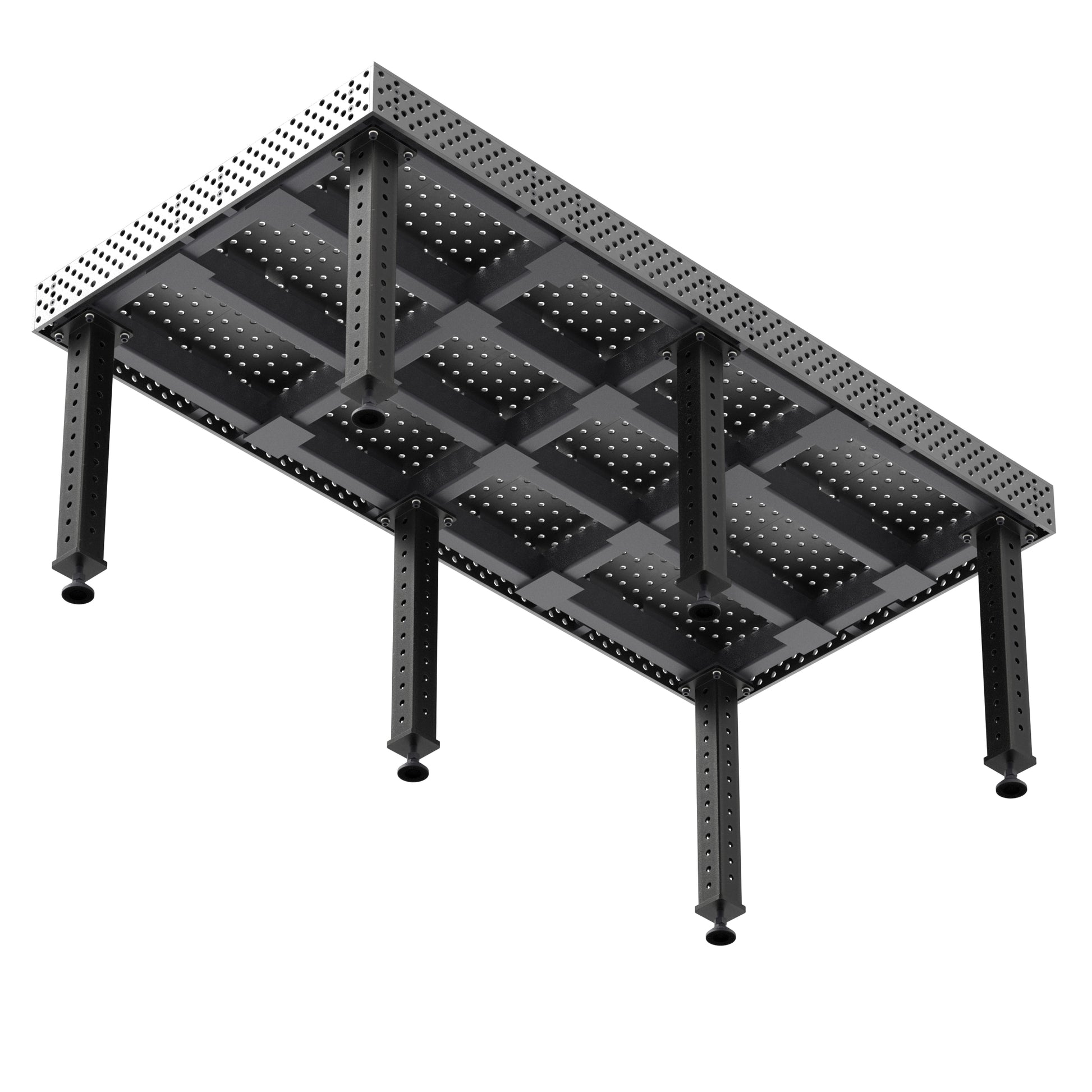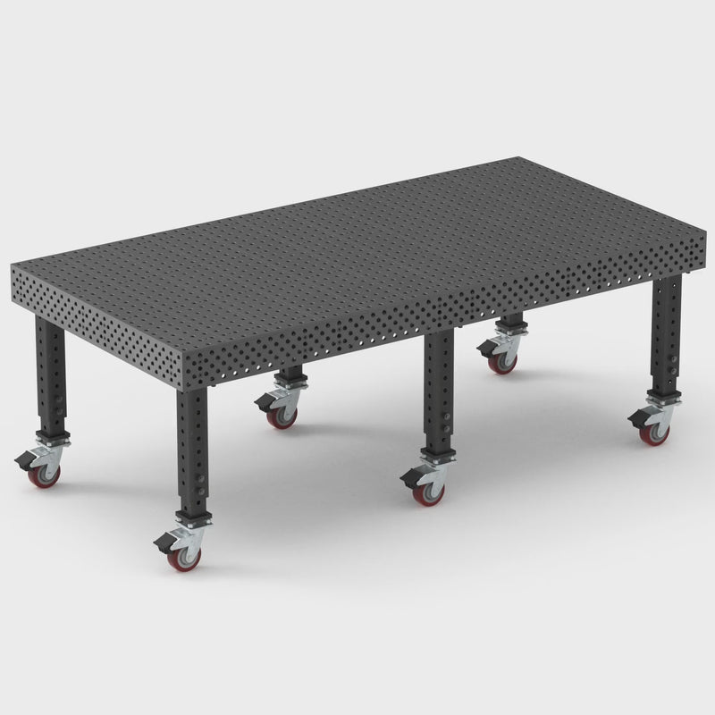 - Product Dimensions and Specifications: The table measures 96" x 48" with a 6" side height; it features 5/8" boreholes spaced 2" apart for precise fixturing and a five-sided, reversible design to extend usability.