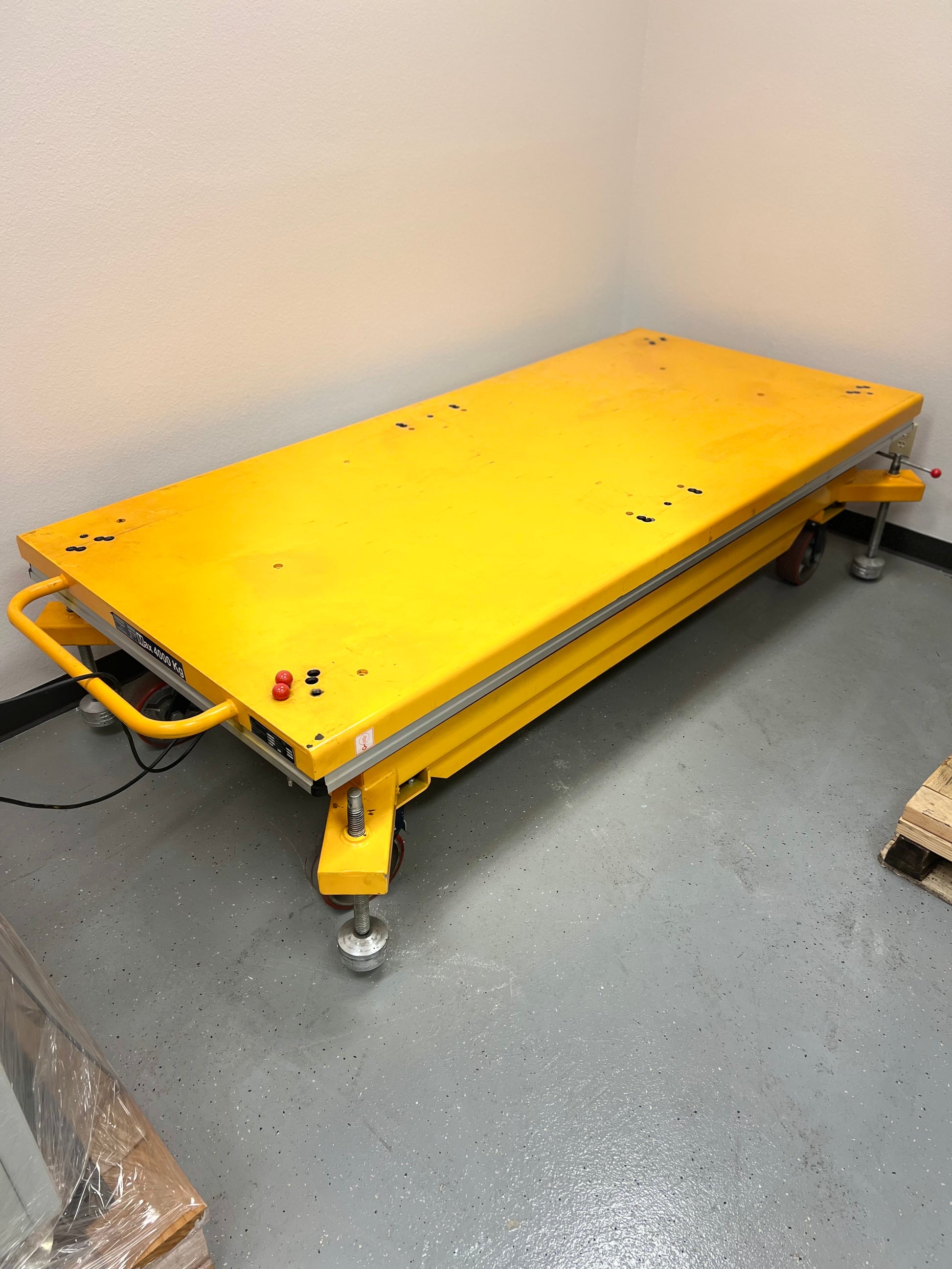 This lift table was previously used as a prototype for testing within our facility. It has only been used for testing purposes and has less than 20 hours of total use. It is in excellent working condition with no issues, making it ideal for lifting heavy machinery, pallets, or materials in industrial or workshop settings.