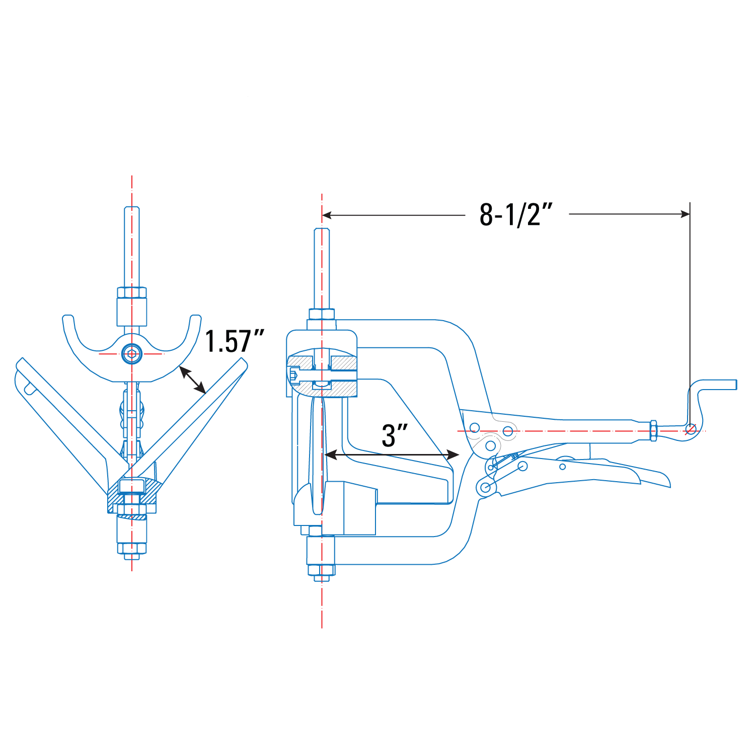 - 1.57" Max clamping capacity and 2.0" Max pass-through capacity