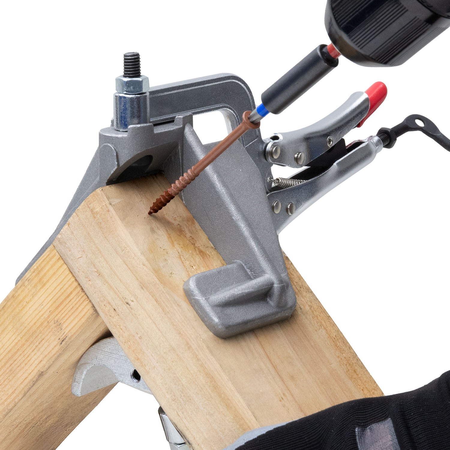 The PK634 is an expansion of our PL634 Joint Master. This new model has been modified with a larger right angle clamp, it allows for better clamping of 2 x 4 wooden studs. Quickly lock and hold stock at 90º angles with a quick clasp of the locking handles.