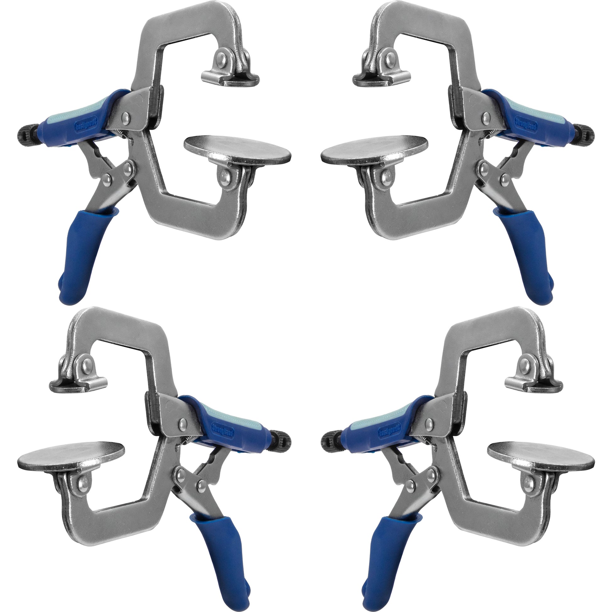 These clamps feature large clamp pads that distribute clamping force evenly, and hold pieces flush during assembly.